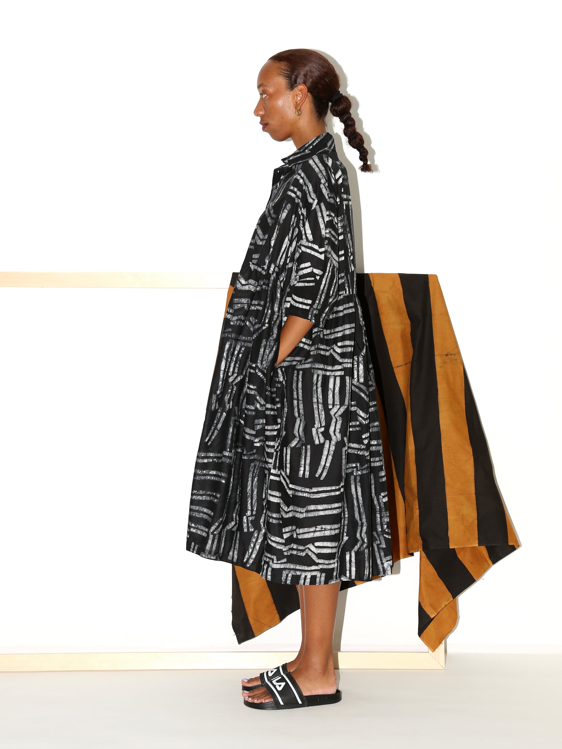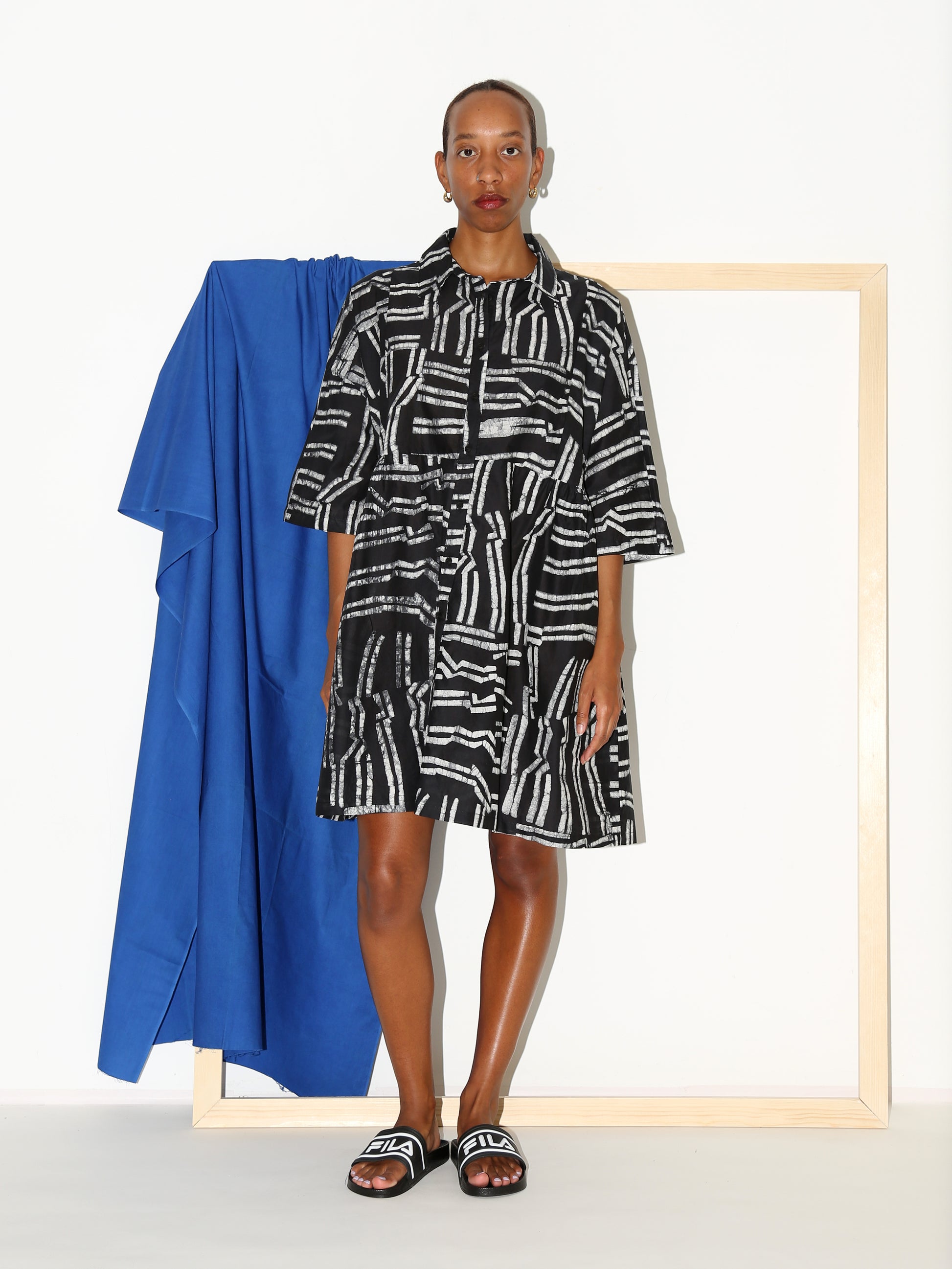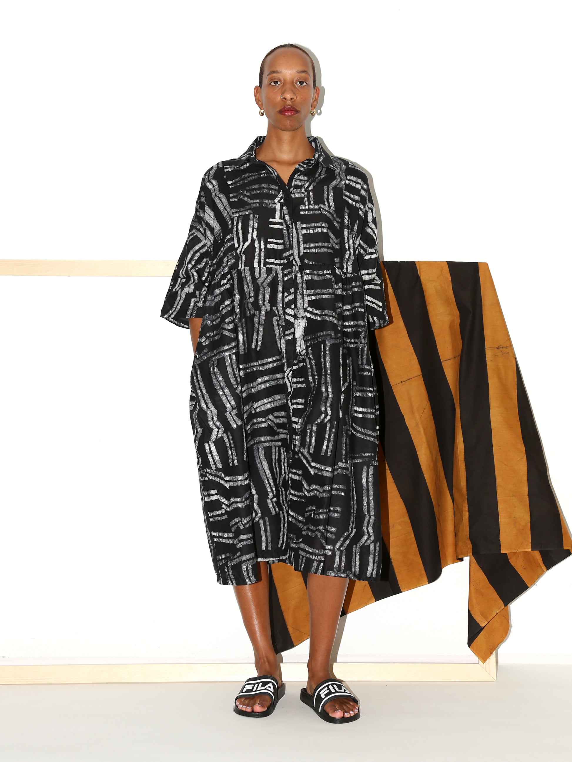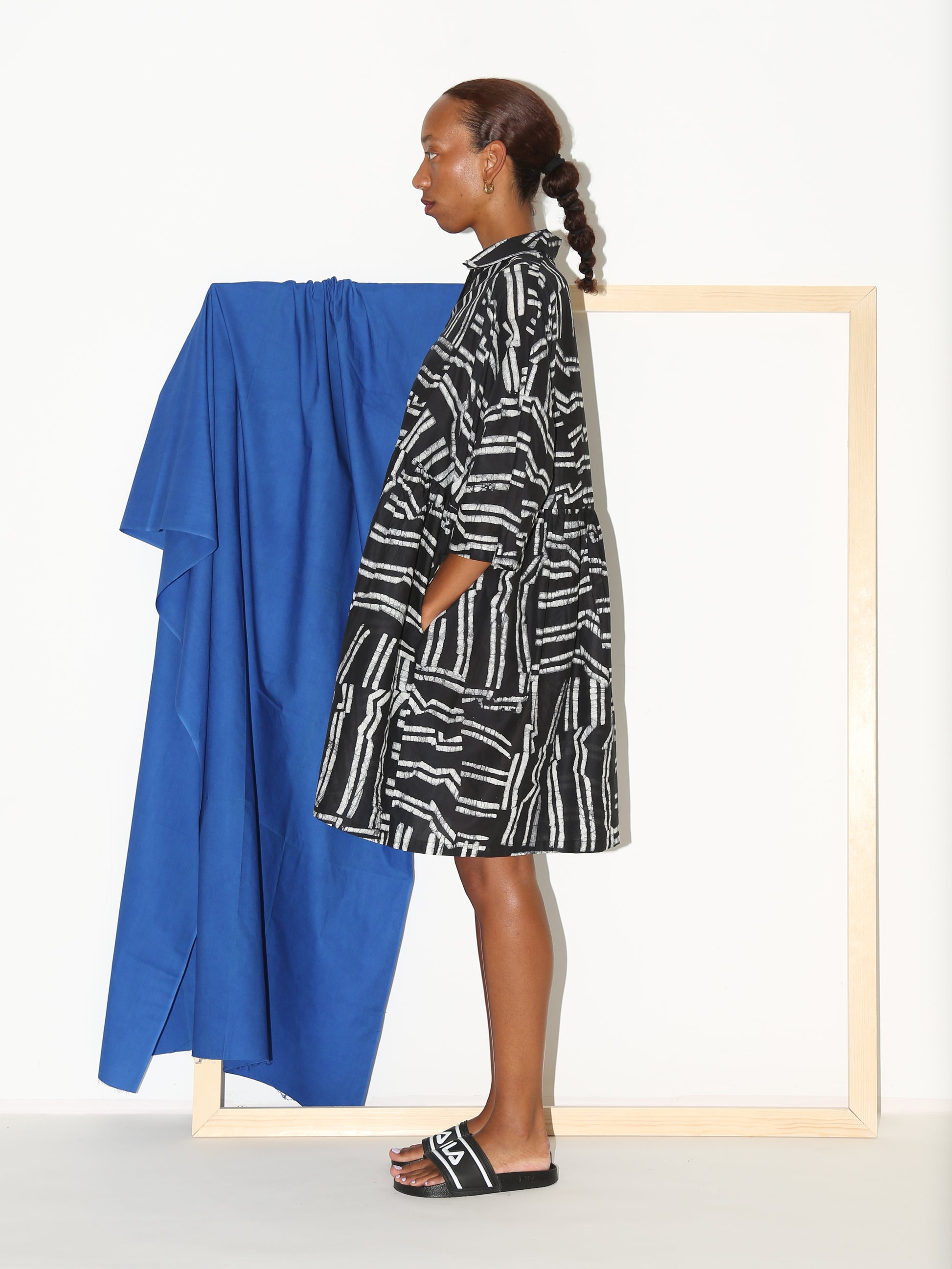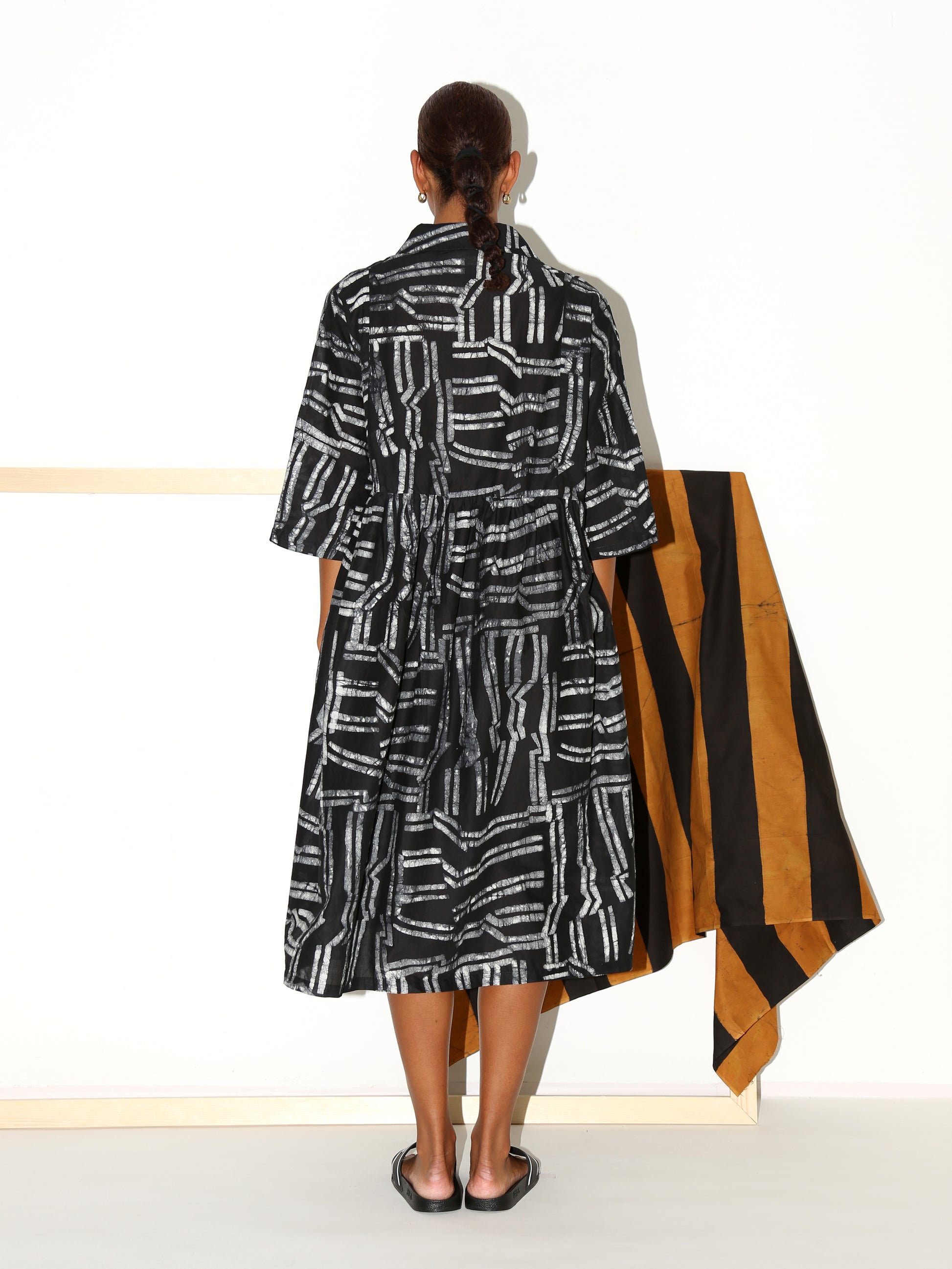 The MARLI dress is a versatile shirt dress with a gathered waist and 3/4-length sleeves that can be rolled up for a casual look. Ethically made with 100% certified organic cotton.
