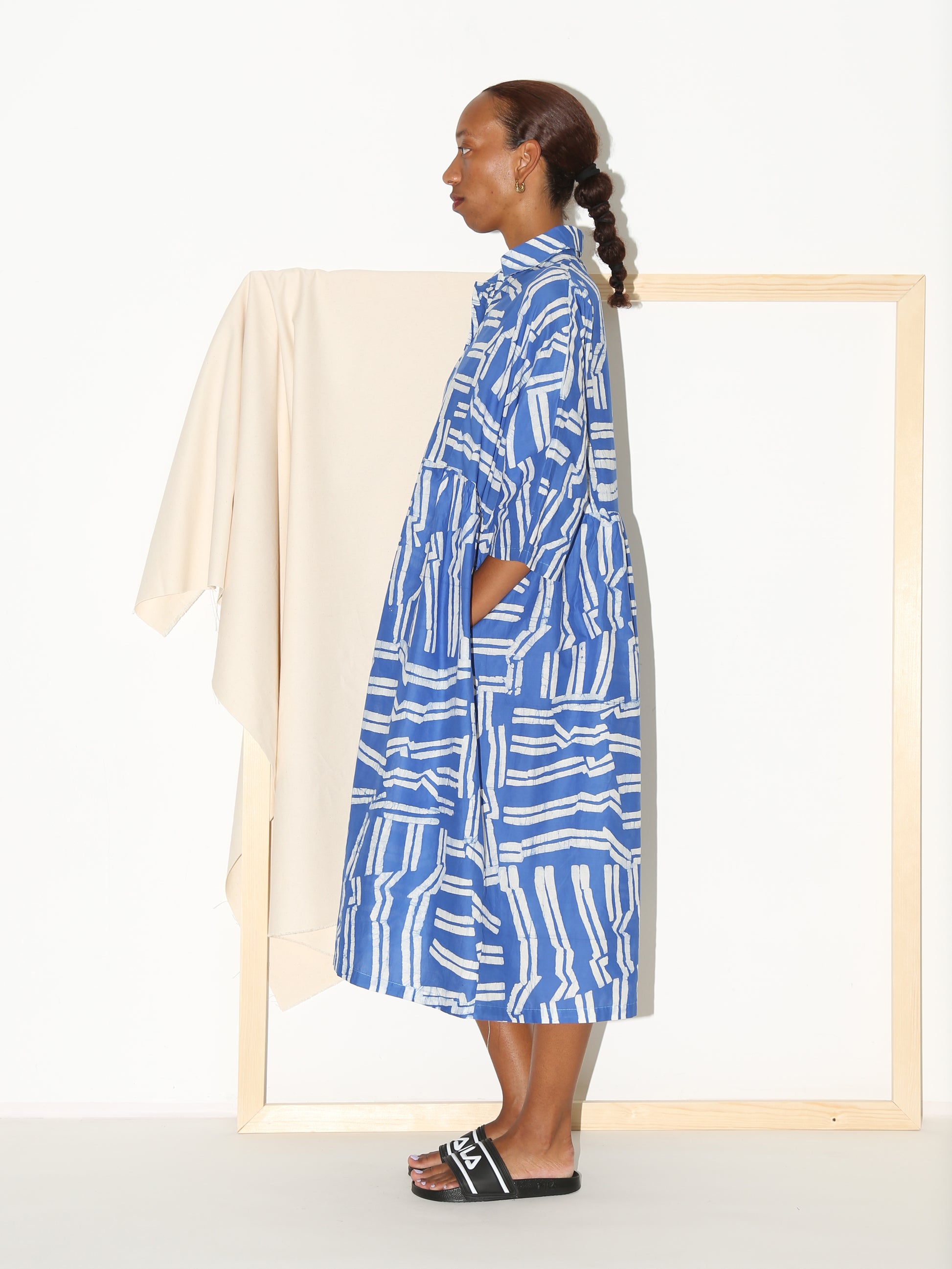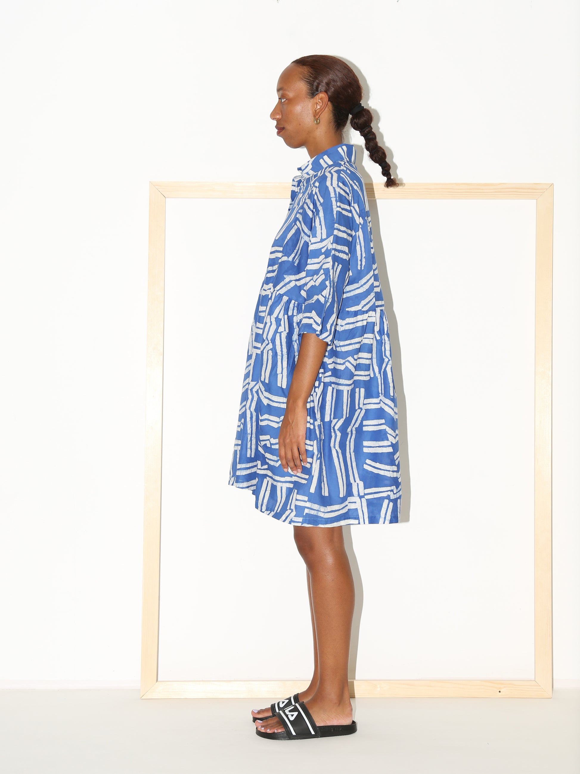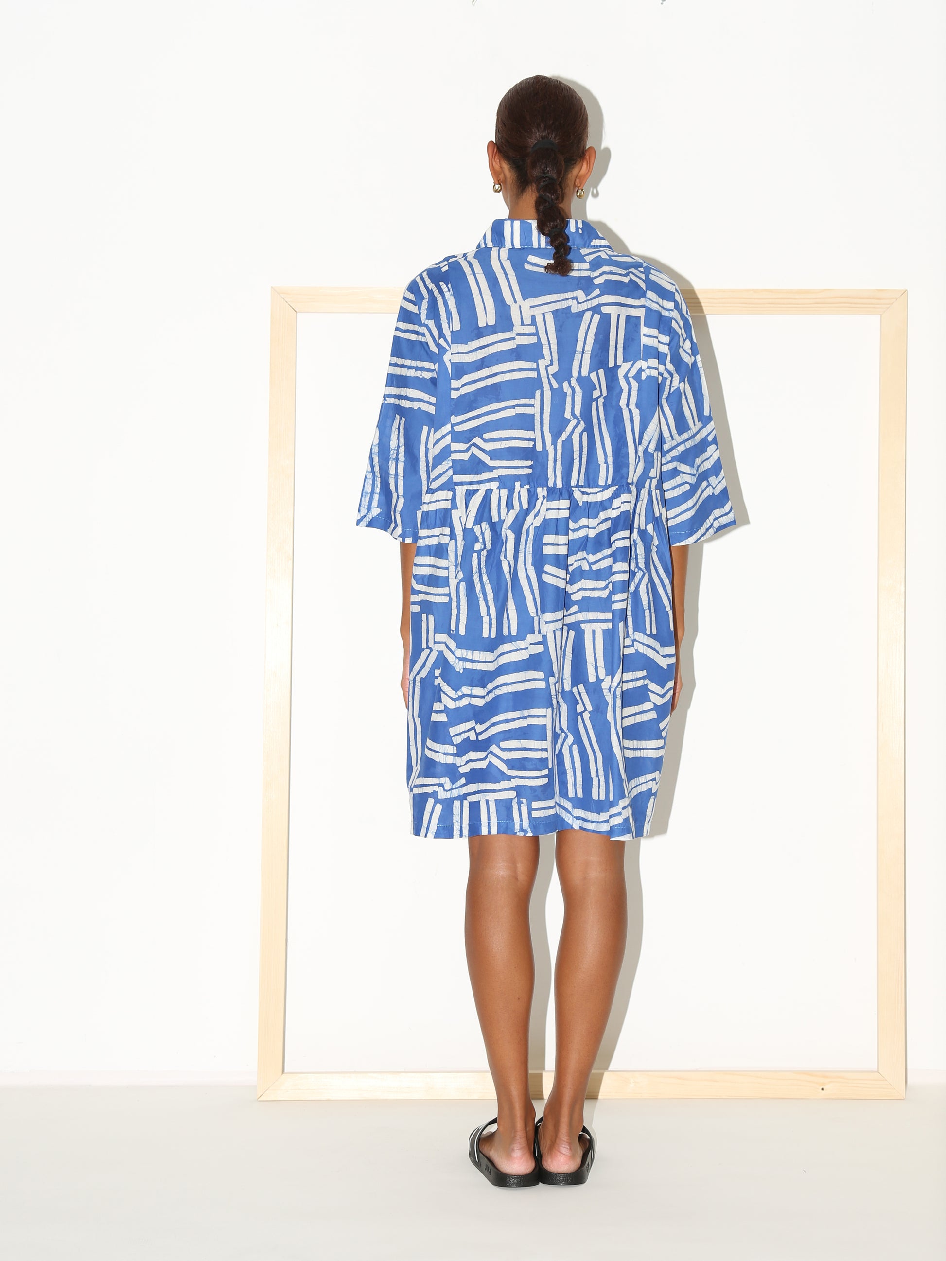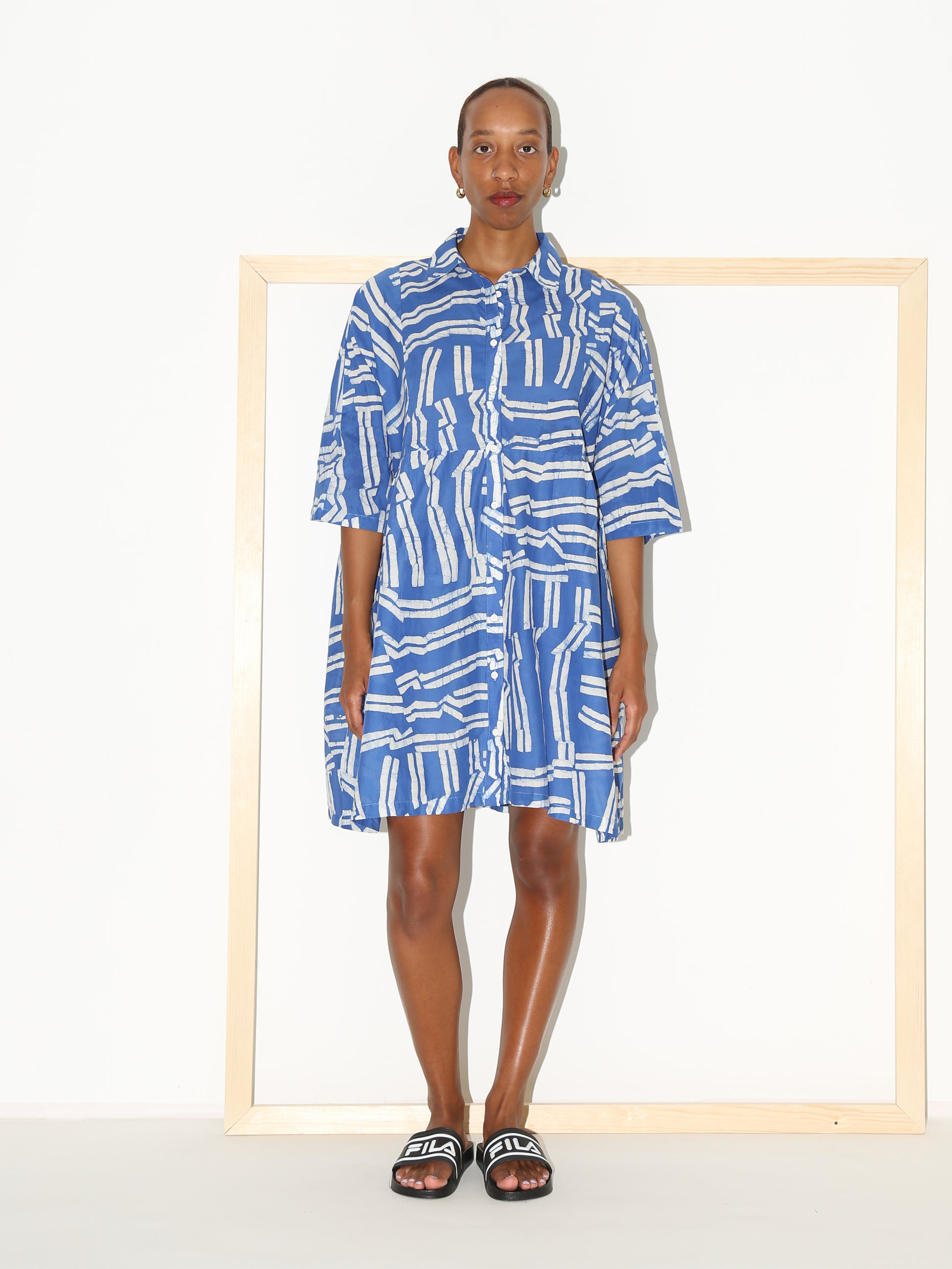 The MARLI dress is a versatile shirt dress with a gathered waist and 3/4-length sleeves that can be rolled up for a casual look. Ethically made with 100% certified organic cotton.