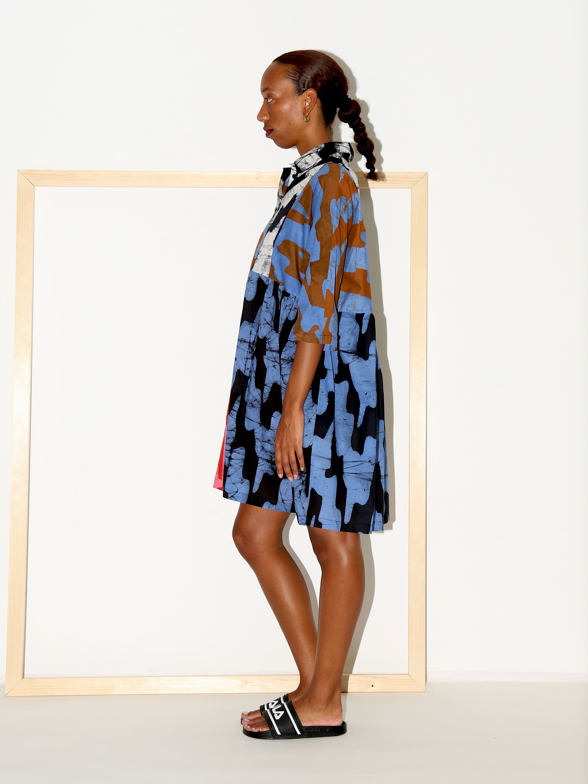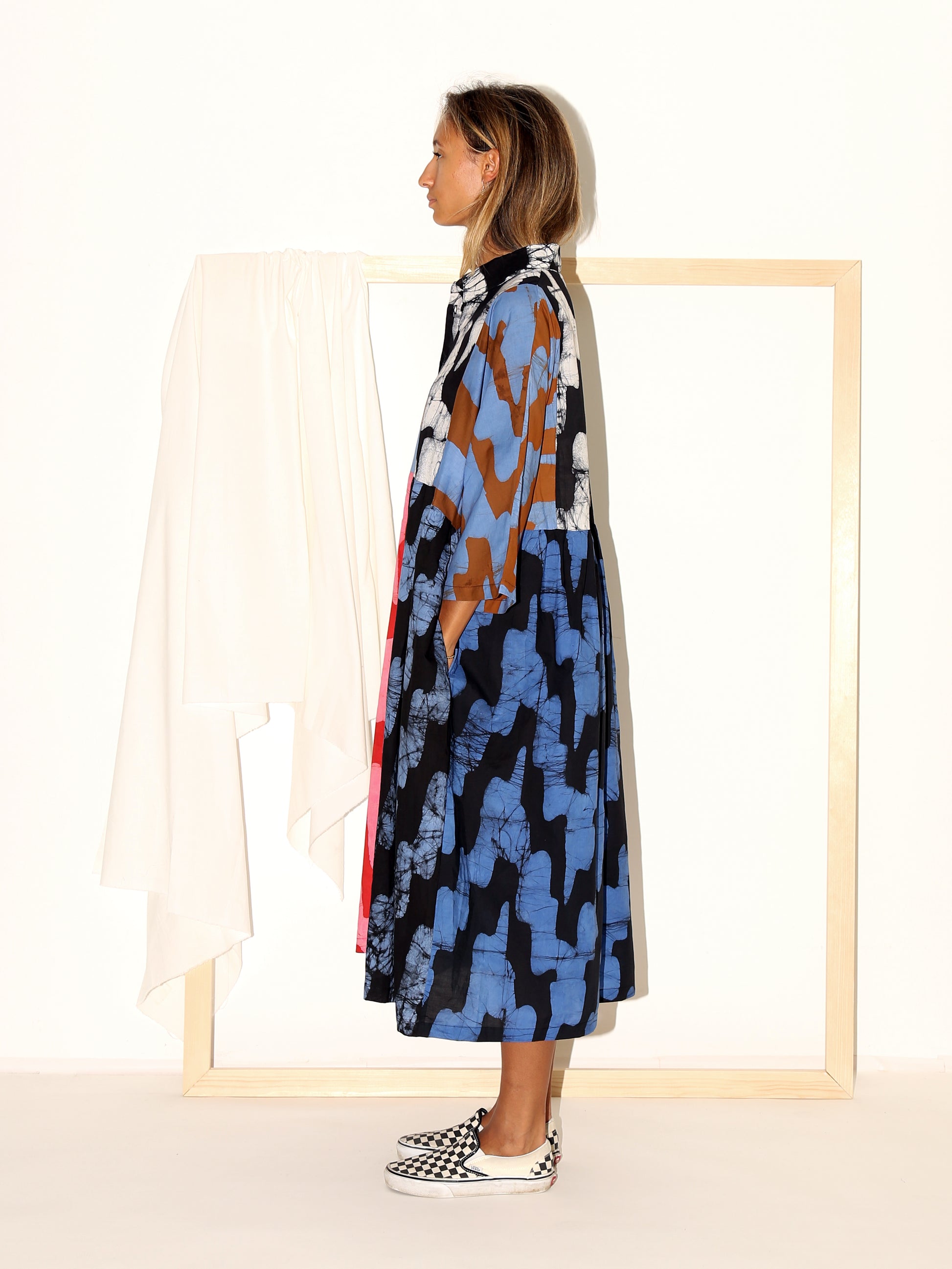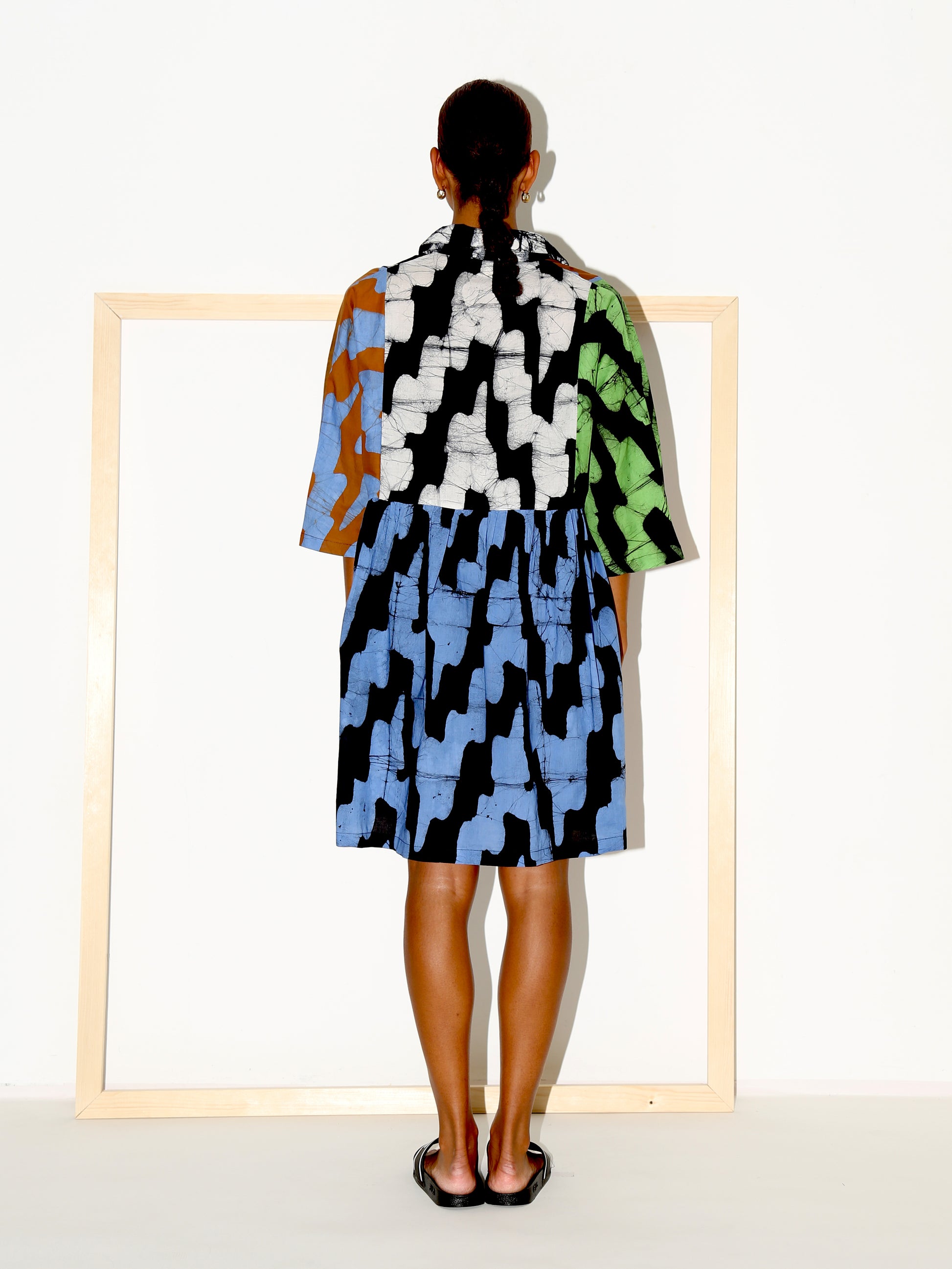 The MARLI dress is a versatile shirt dress with a gathered waist and 3/4-length sleeves that can be rolled up for a casual look. Ethically made with 100% certified organic cotton.