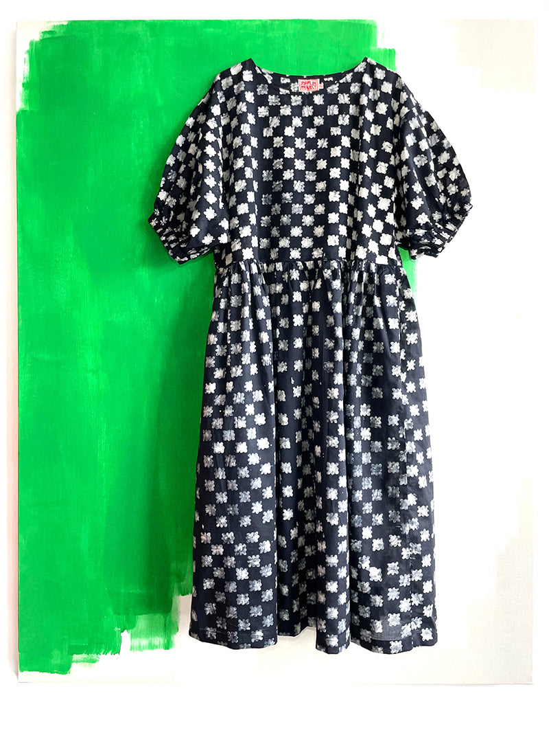 Introducing the NOMA Dress in an oversized Midi style, complete with short sleeves and a voluminous gathered skirt.